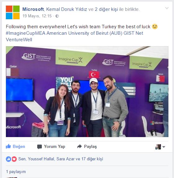 They are waiting for us to show our demo in Microsoft Turkey Office in two weeks. And they said they are going to book a flight and hotel for us because they said In 2017 MEA finals will be held in Lebanon. Actually this phase was best and the worst part. We won the Imagine Cup Turkey, but we did not build the program????
